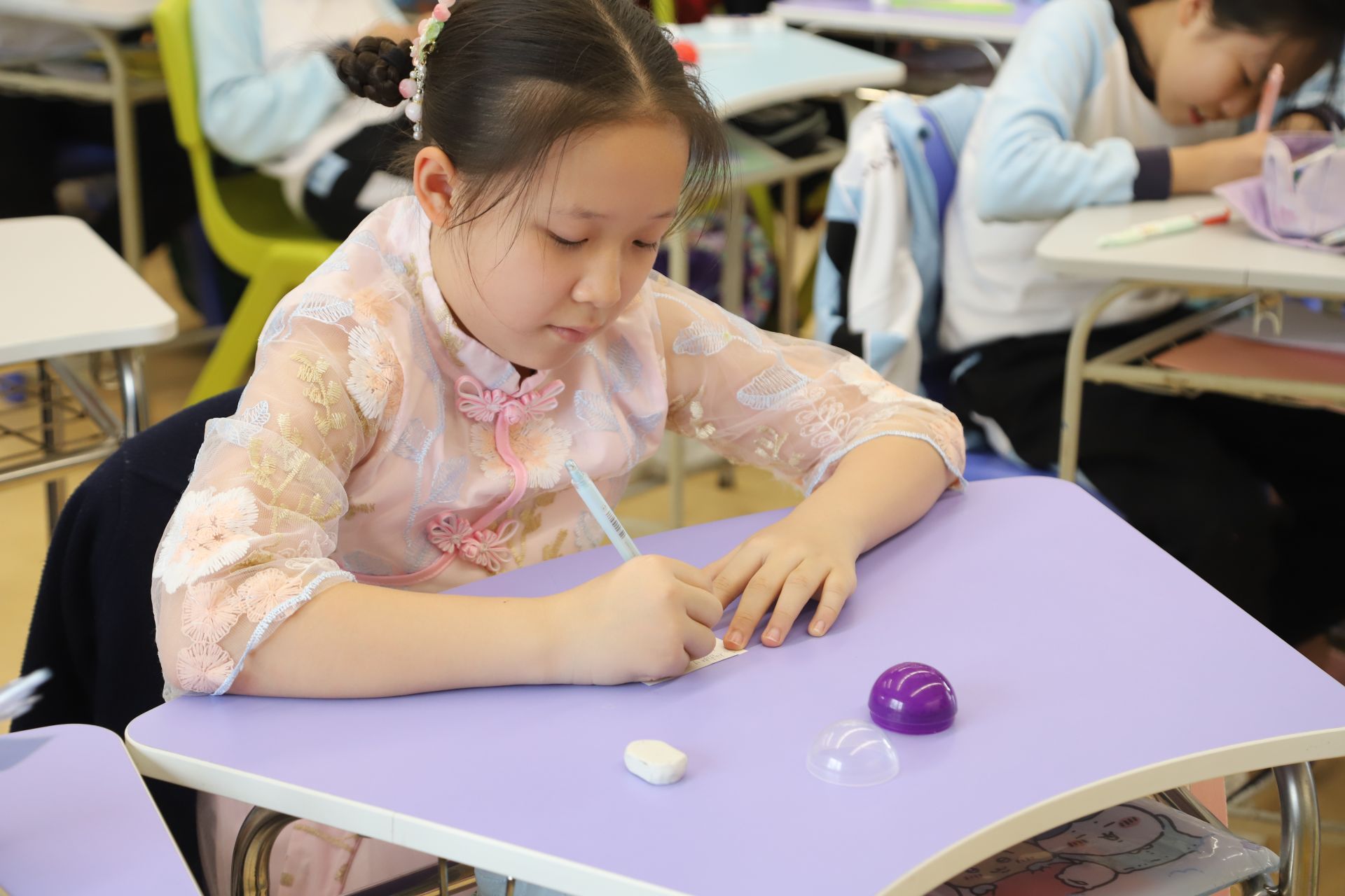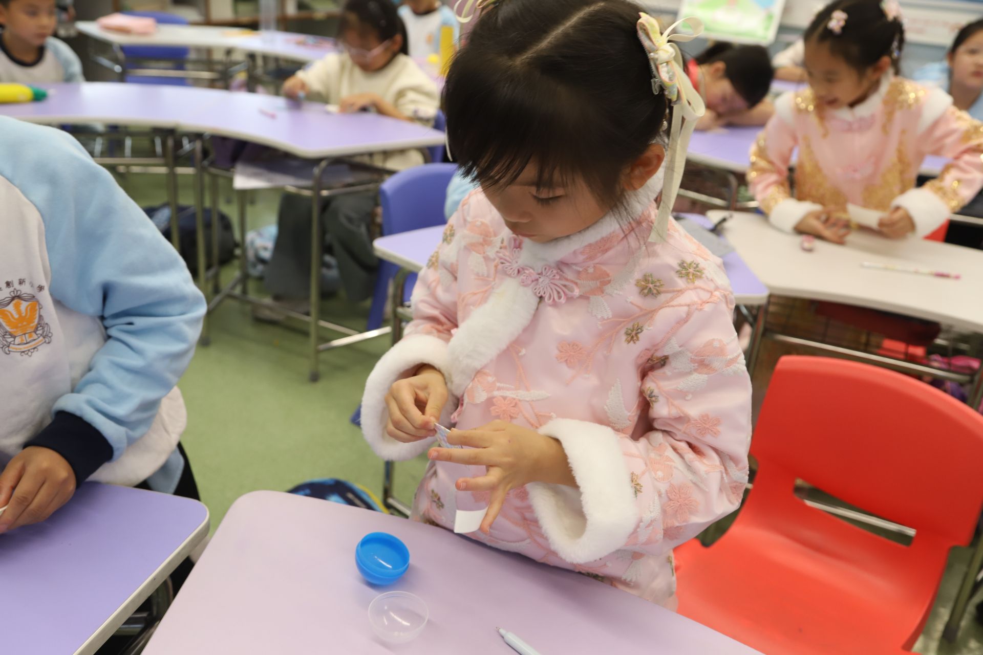 同學們將滿載祝福的摺紙放回快樂扭蛋內,請學校代為轉送給他們想感謝的人。師生共同經營「愛的語言」,有效提昇校園正向關係。